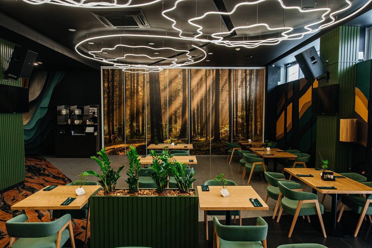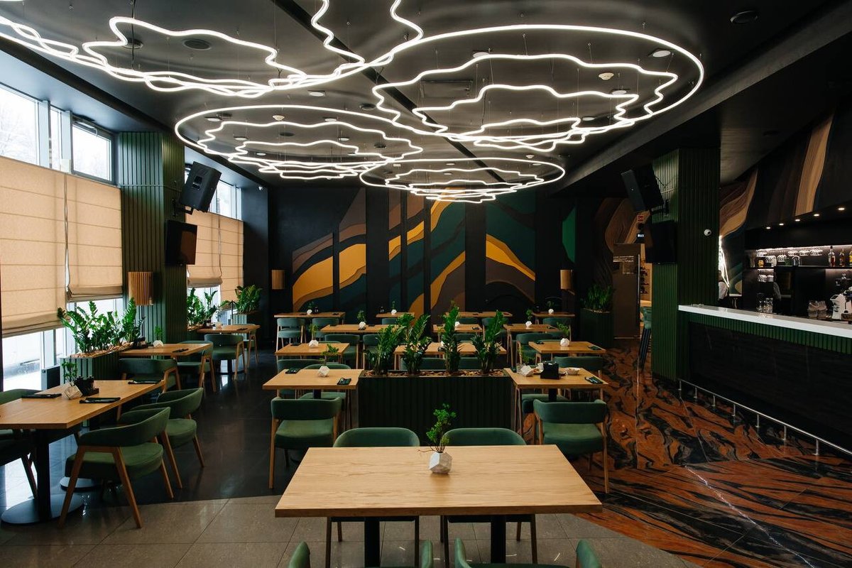 У нас есть Wi-Fi, представлены бизнес-ланч, бранч и шведский стол, производится доставка блюд в офис или на дом, доступны парковка, детская комната и банкетный зал - специально для вашего удобства.